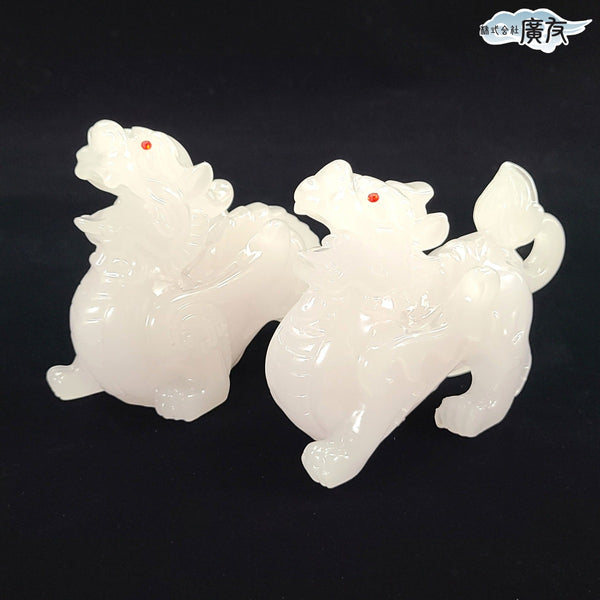 白瑠璃 雌雄貔貅ヒキュウ 一対