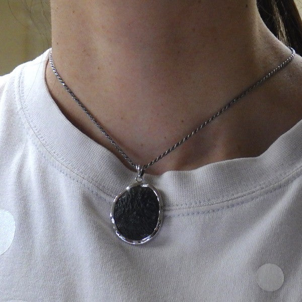 隕石の落下により跳ね上げられた地表の物質が急速に溶解しガラス化、その後瞬時に蒸発濃縮し固化して生成したモルダバイトのペンダントトップ。